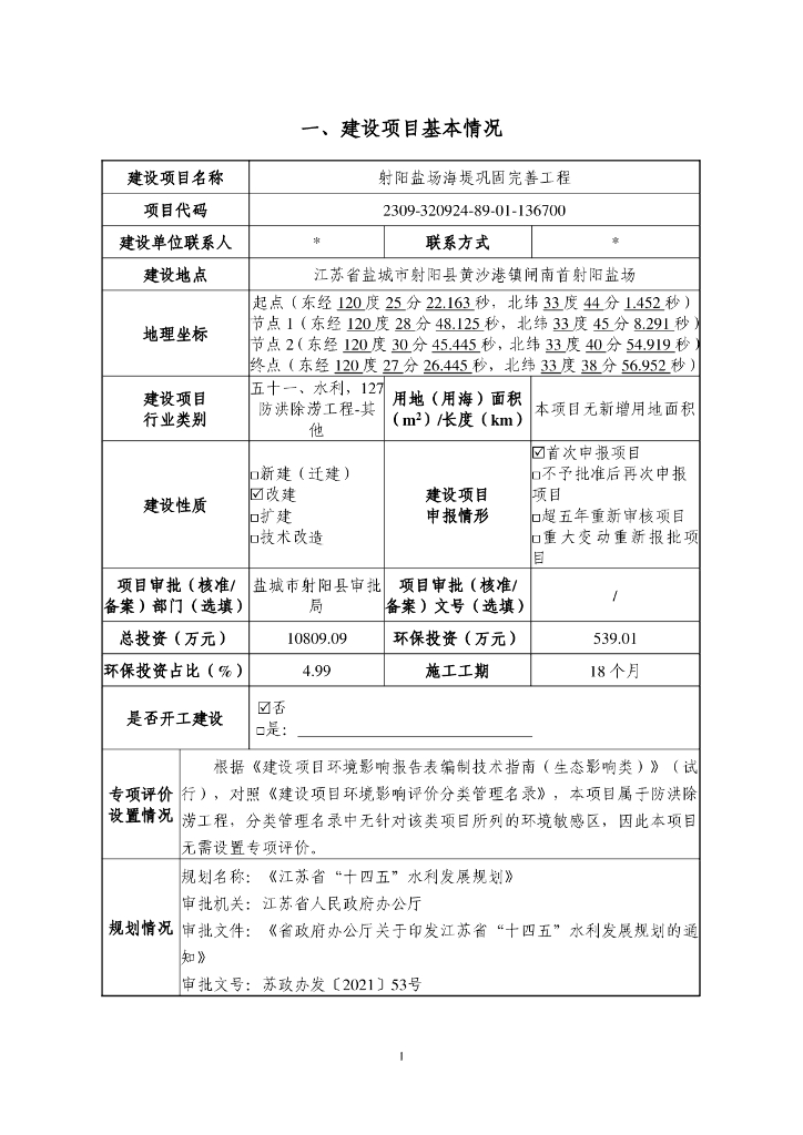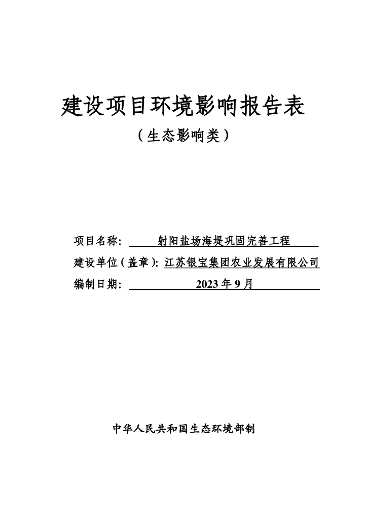 射阳盐场海堤巩固完善工程建设项目环境影响报告表(生态影响类).pdf