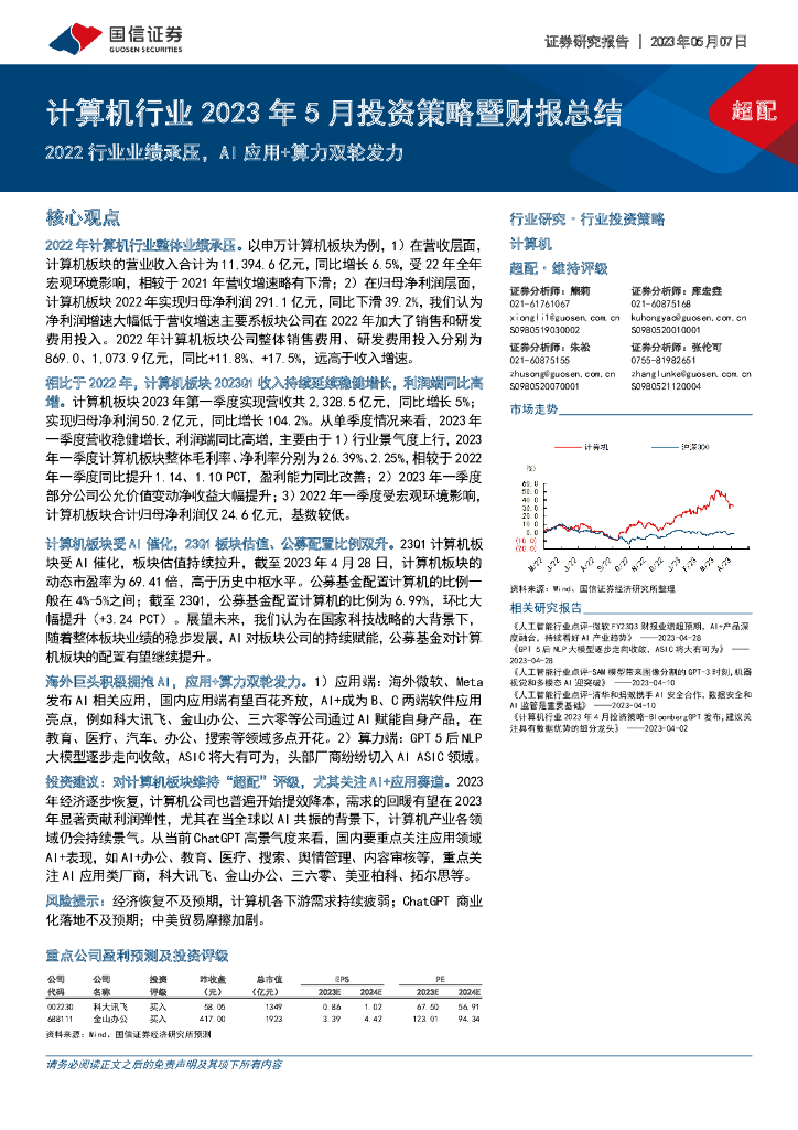 国信证券:计算机行业2023年5月投资策略暨财报总结:2022行业业绩承压,AI应用+算力双轮发力.pdf
