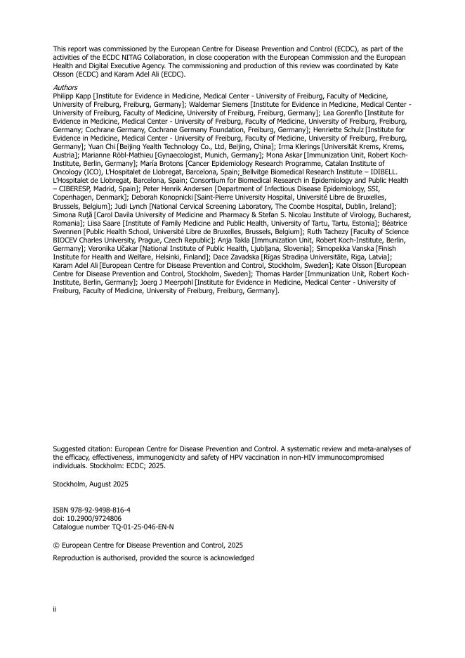 欧洲疾控中心:2025年在非艾滋病毒免疫功能低下个体中,HPV疫苗接种的疗效、效果、免疫原性和安全性系统评价和荟萃分析报告(英文版).pdf