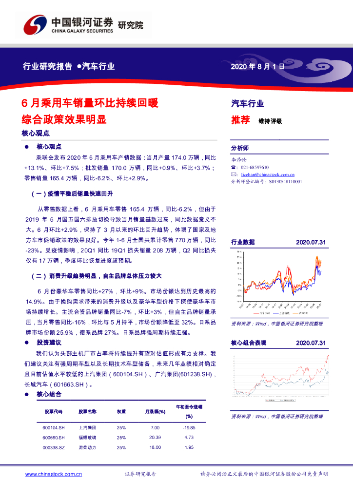 中国银河:汽车行业:6月乘用车销量环比持续回暖 综合政策效果明显.pdf