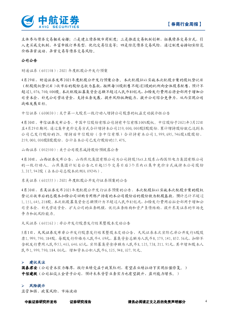 中航证券:券商行业周报(2021年第十五期):一季报业绩显著提升,头部券商表现亮眼.pdf