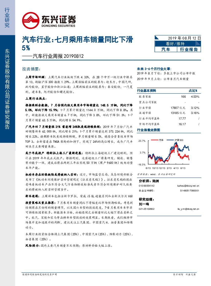 东兴证券:汽车行业周报:七月乘用车销量同比下滑5%.pdf