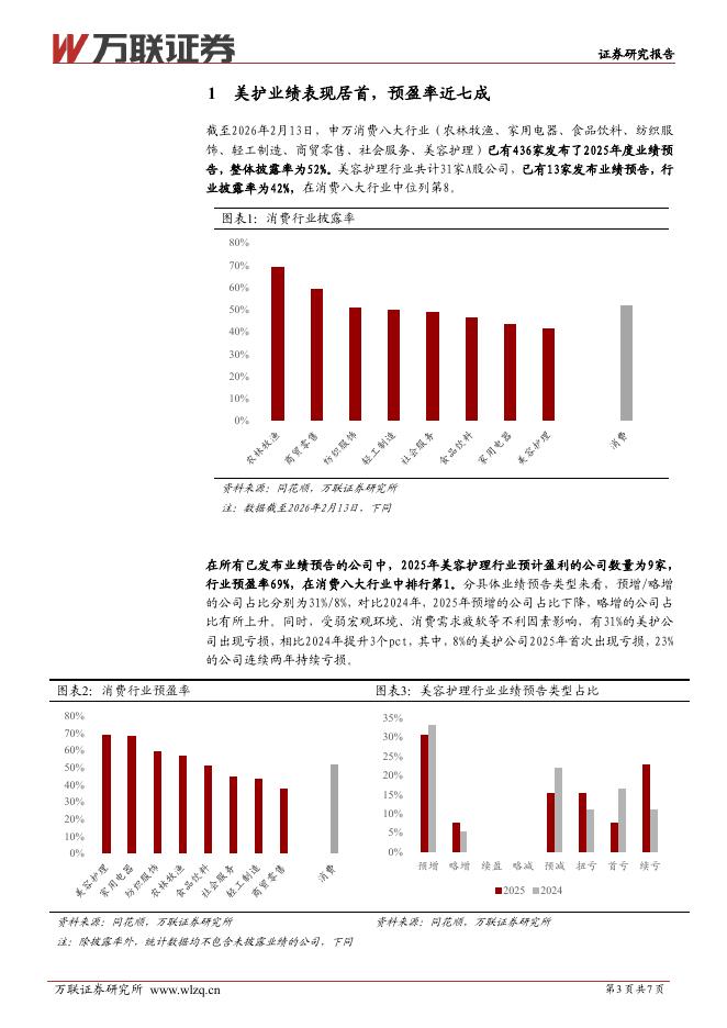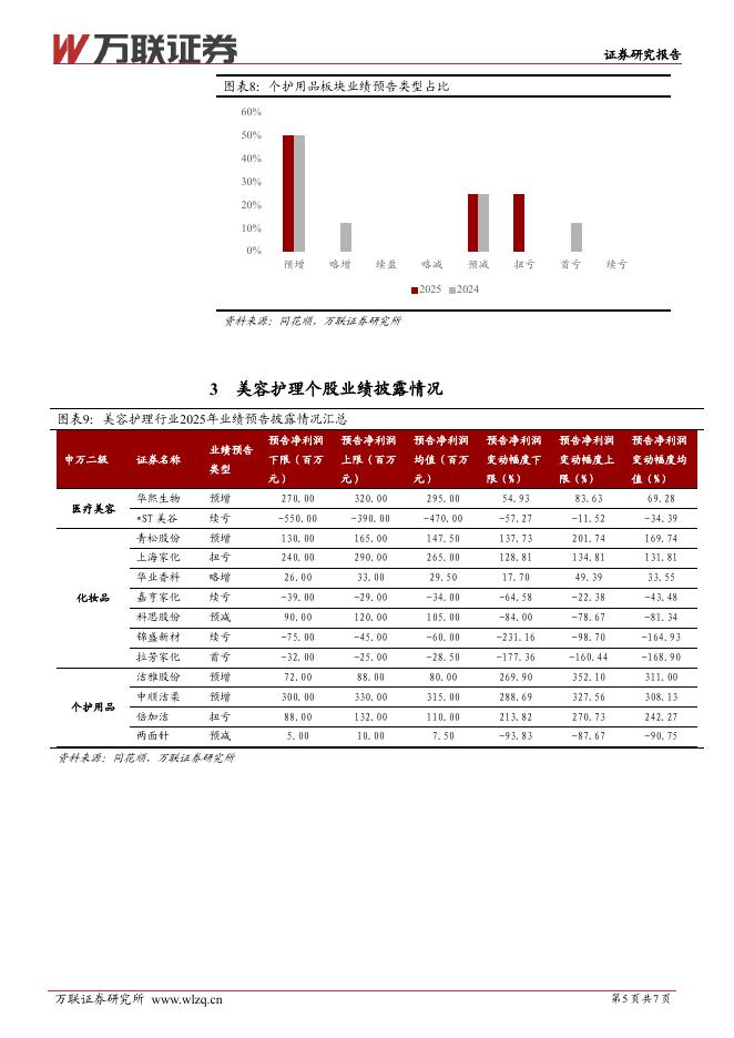 万联证券:美容护理行业2025年业绩预告综述:美护行业预盈率69%,子板块表现较为稳定.pdf