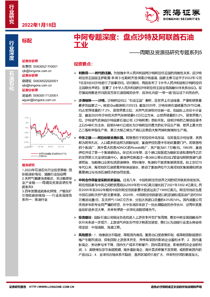 东海证券:石油石化周期及资源品研究专题系列5:中阿专题深度:盘点沙特及阿联酋石油工业.pdf