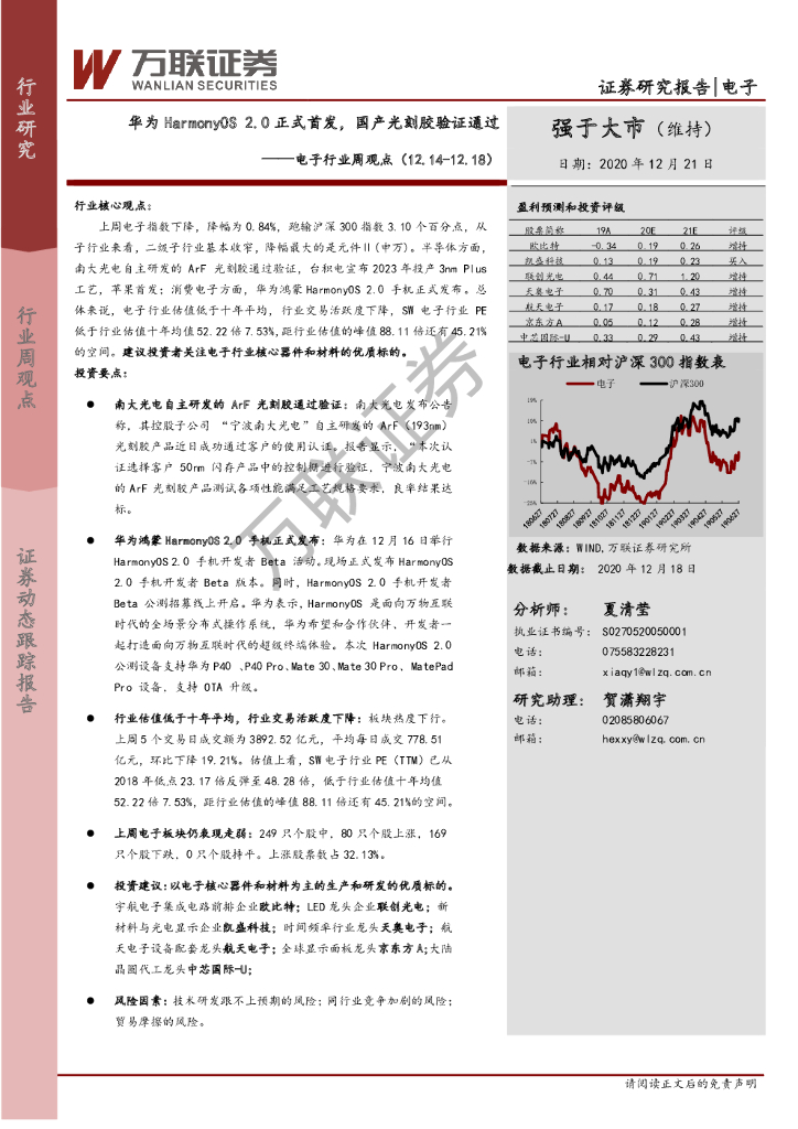 万联证券:电子行业周观点:华为HarmonyOS 2.0正式首发,国产光刻胶验证通过.pdf