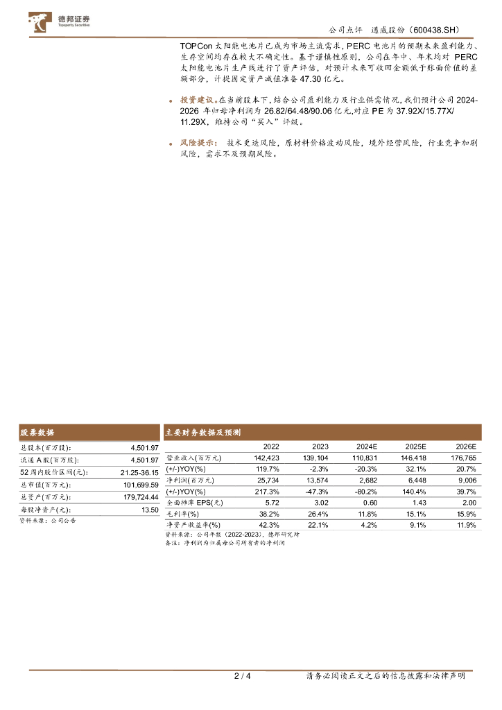 德邦证券:通威股份(600438)-业绩点评:盈利阶段性承压,硅料电池双龙头地位稳固,持续降本增效强化核心竞争力.pdf