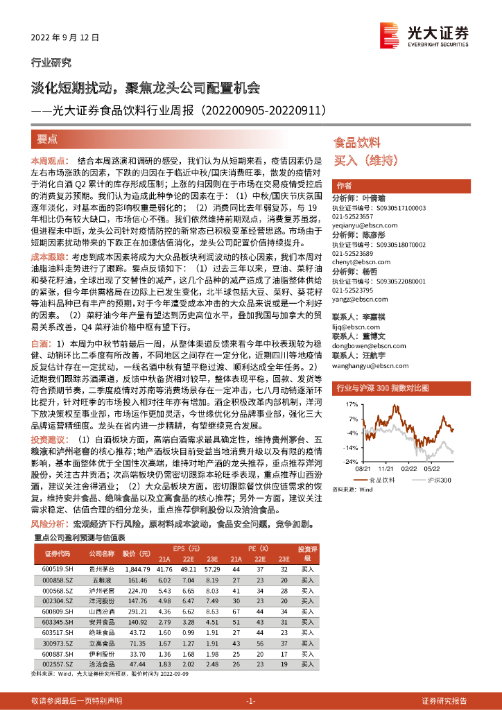 光大证券:食品饮料行业周报:淡化短期扰动,聚焦龙头公司配置机会.pdf