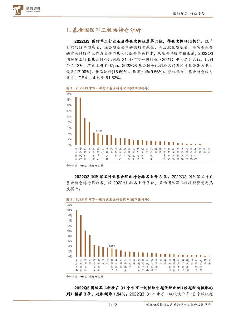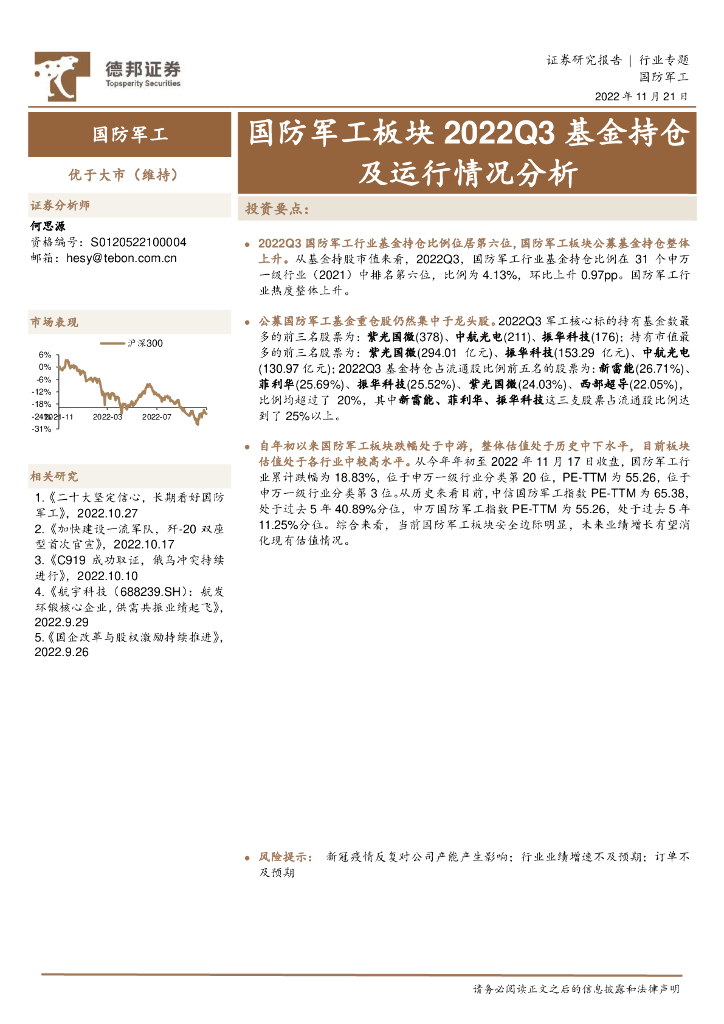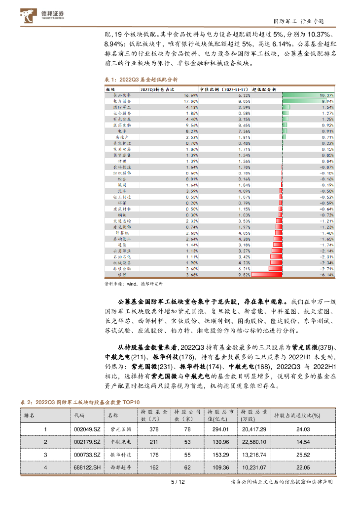 德邦证券:国防军工板块2022Q3基金持仓及运行情况分析.pdf