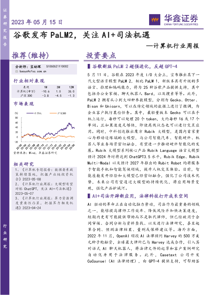 华鑫证券:计算机行业周报:谷歌发布PaLM2,关注AI+司法机遇.pdf