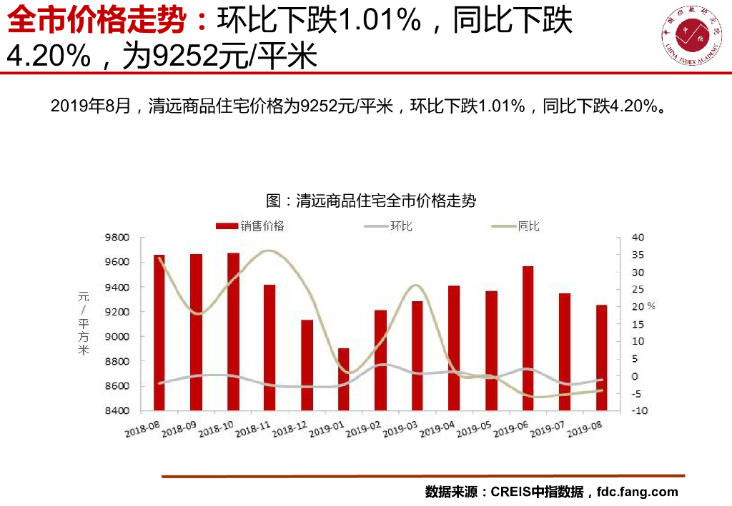 中国指数研究院:清远房地产市场快报(2019年8月).pdf