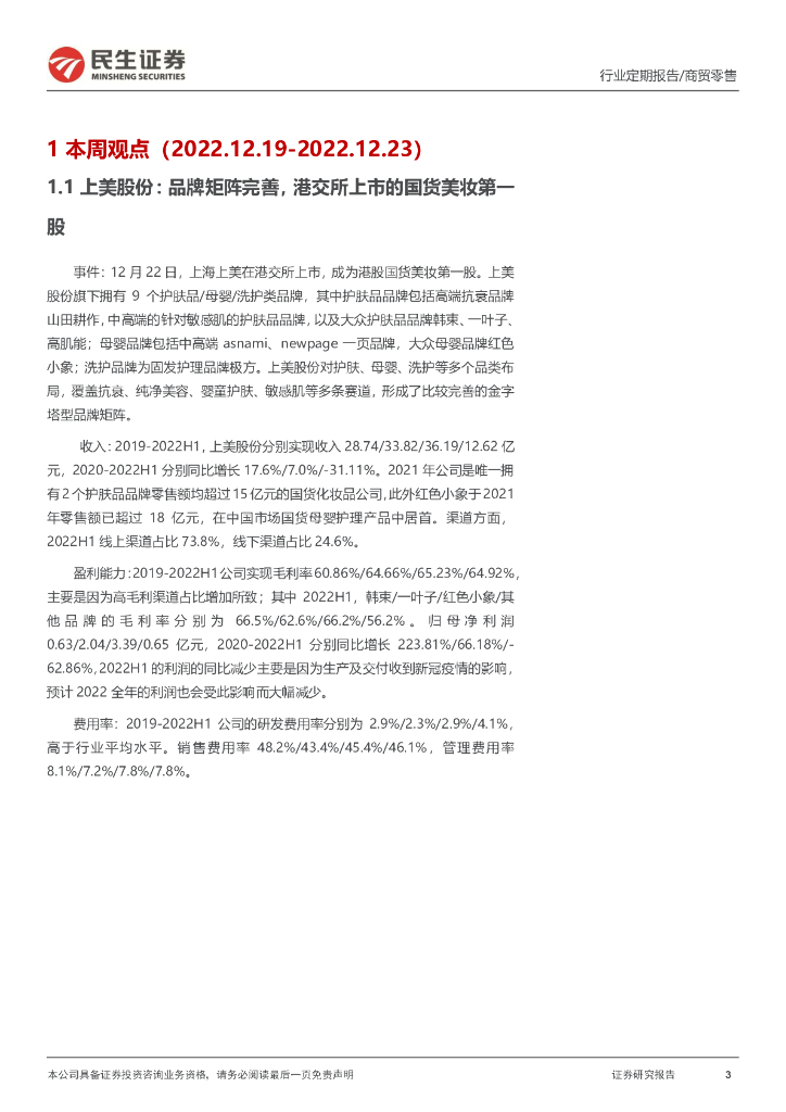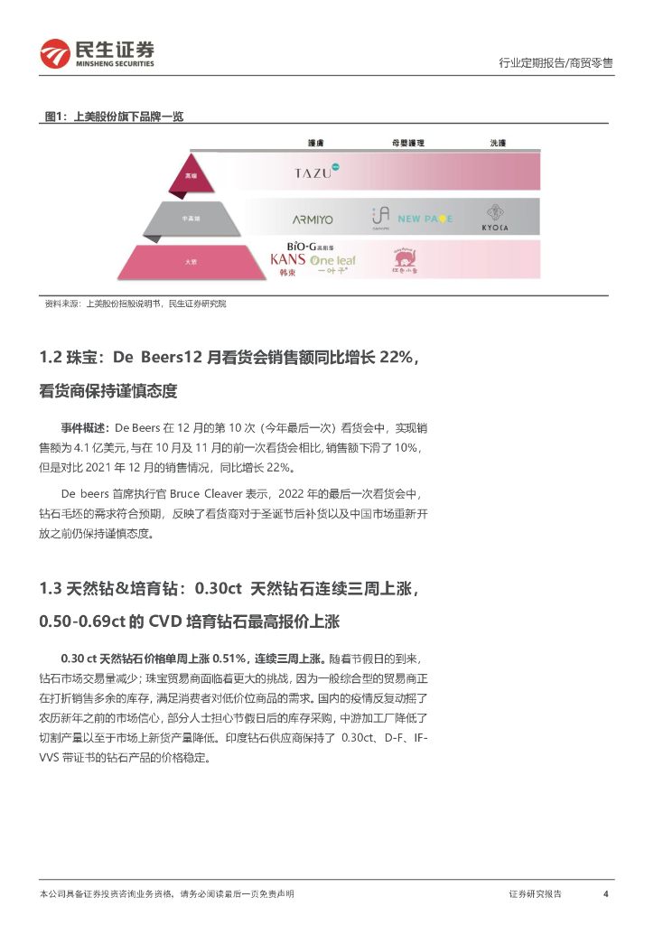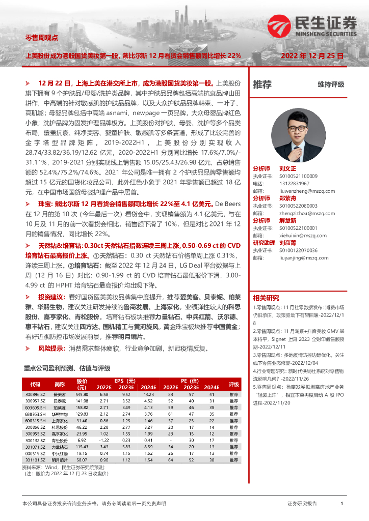 民生证券:零售周观点:上美股份成为港股国货美妆第一股,戴比尔斯12月看货会销售额同比增长22%.pdf