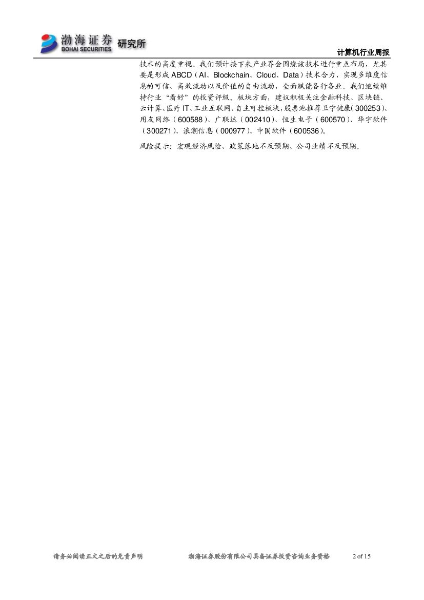 渤海证券:计算机行业周报:区块链产业迎政策利好,或将助推计算机板块行情.pdf