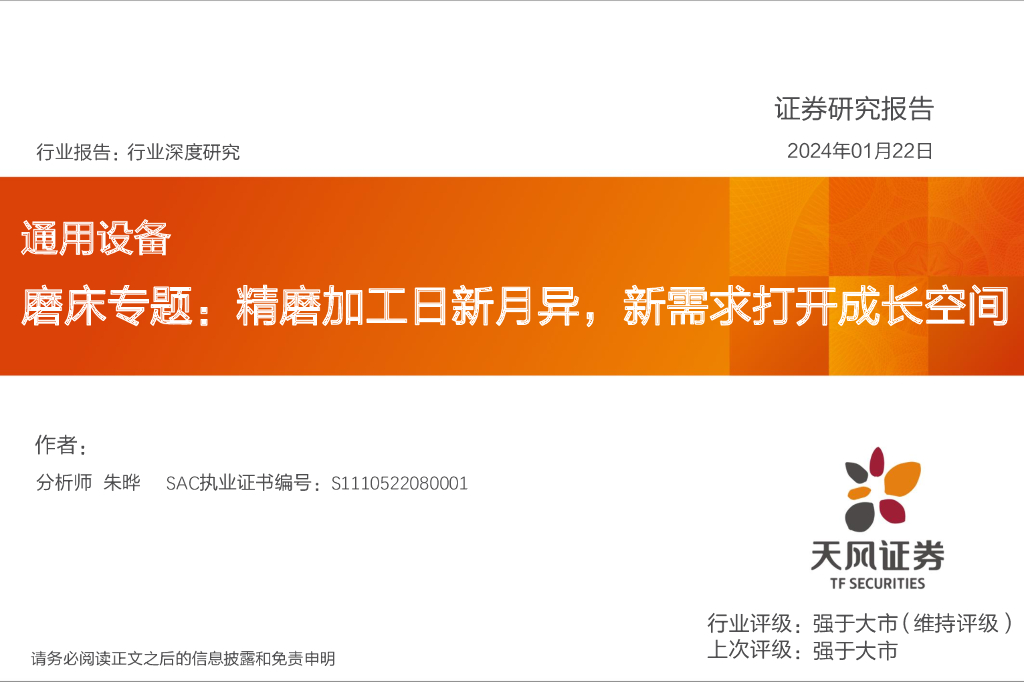 天风证券:通用设备行业深度研究:磨床专题:精磨加工日新月异,新需求打开成长空间.pdf