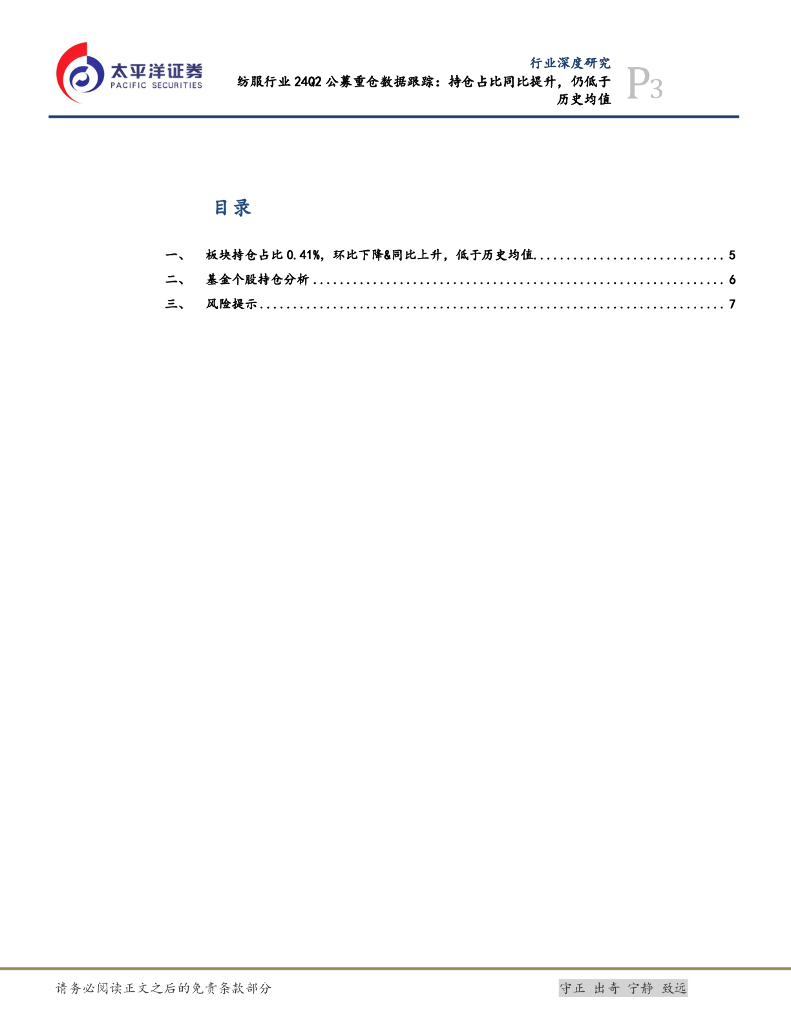 太平洋证券:纺服行业24Q2公募重仓数据跟踪:持仓占比同比提升,仍低于历史均值.pdf