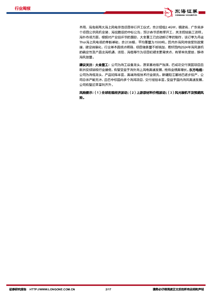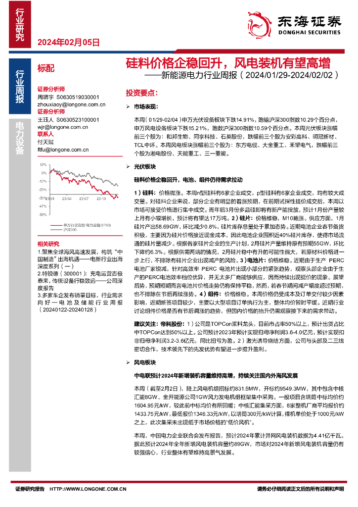 东海证券:新能源电力行业周报:硅料价格企稳回升,风电装机有望高增.pdf