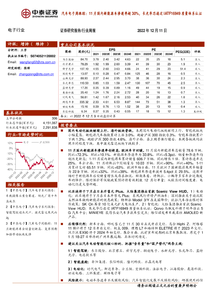 中泰证券:汽车电子周跟踪:11月国内新能源车渗透率超30%,长光华芯通过IATF16949质量体系认证.pdf
