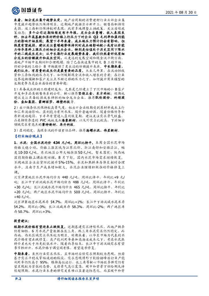 国盛证券:建筑材料行业周报:推荐再升科技,续看好水泥估值修复.pdf