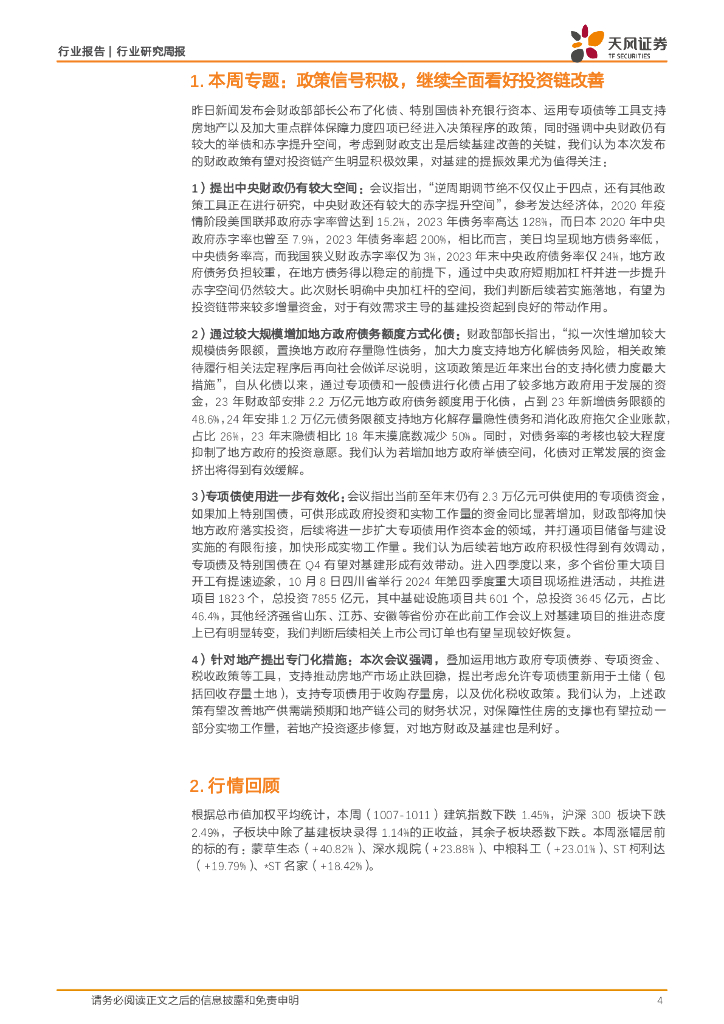 天风证券:建筑装饰行业研究周报:政策信号积极,继续全面看好投资链改善.pdf