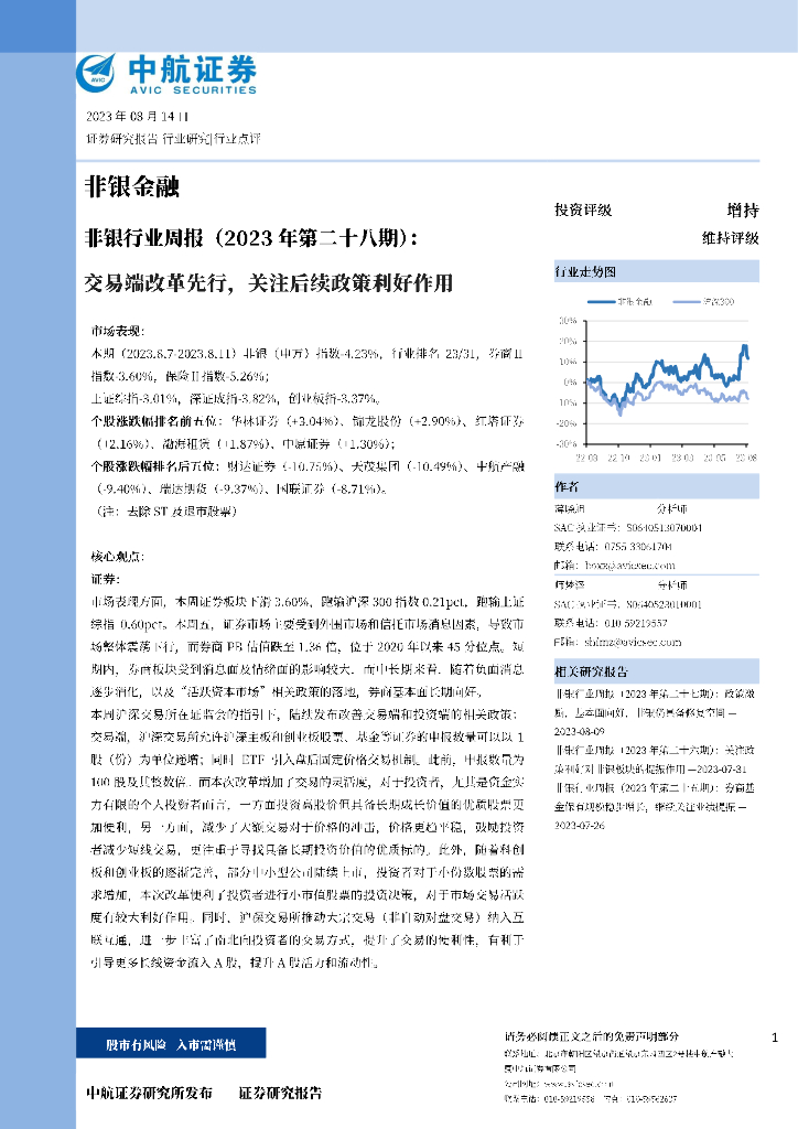 中航证券:非银行业周报(2023年第二十八期):交易端改革先行,关注后续政策利好作用.pdf