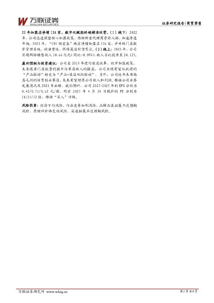 万联证券:潮宏基(002345)-22年报及23年一季报点评:23Q1业绩恢复亮眼增长,渠道转型升级持续推进.pdf