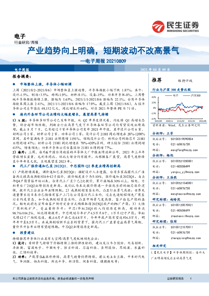 民生证券:电子周报:产业趋势向上明确,短期波动不改高景气.pdf
