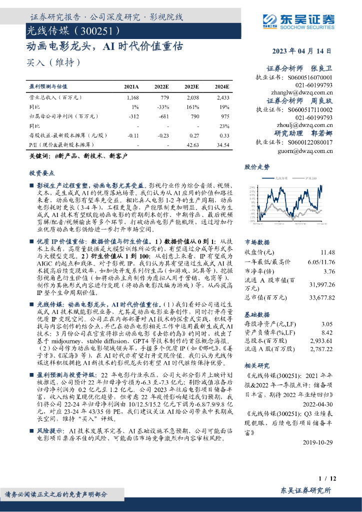 东吴证券:光线传媒(300251)-动画电影龙头,AI时代价值重估.pdf