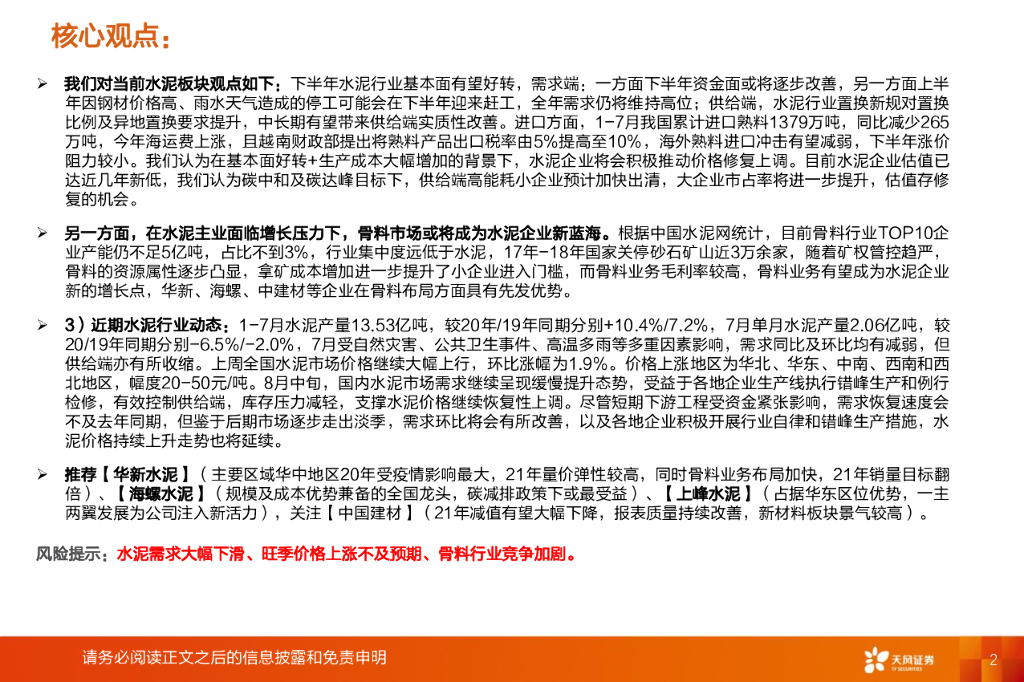 天风证券:水泥制造行业研究周报:水泥价格将继续保持上行走势.pdf