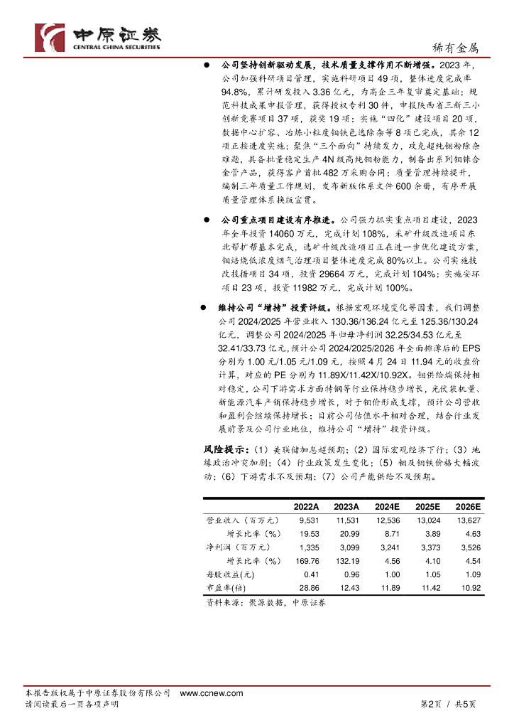中原证券:金钼股份(601958)-公司点评报告:重点项目有序推进,公司业绩再创新高.pdf