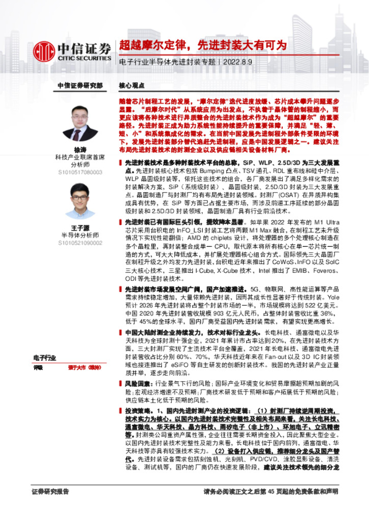 中信证券:电子行业半导体先进封装专题:超越摩尔定律,先进封装大有可为.pdf