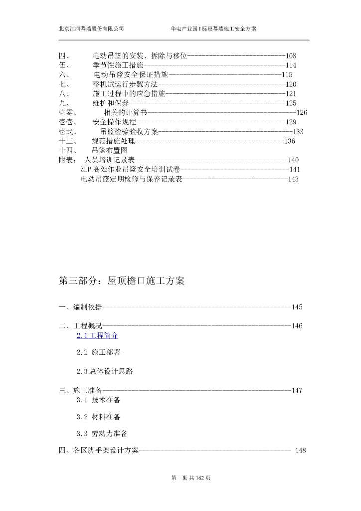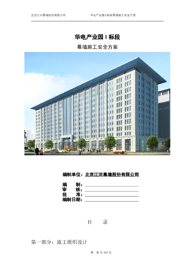 华电产业园I标段幕墙施工安全方案(共166页,包含施工组织设计、吊篮施工方案、屋顶檐口施工方案,图文详细).doc