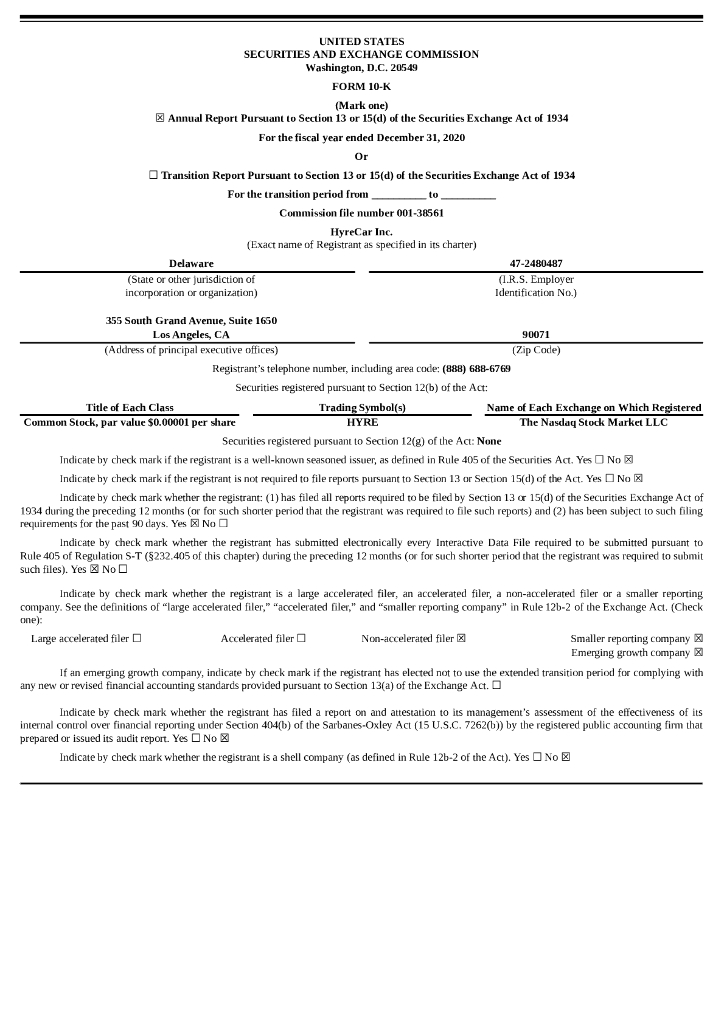 HyreCar Inc.(HYRE)2020财年年度报告(英文版).pdf
