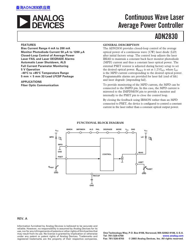 ANALOG DEVICES ADN2830 数据手册.pdf