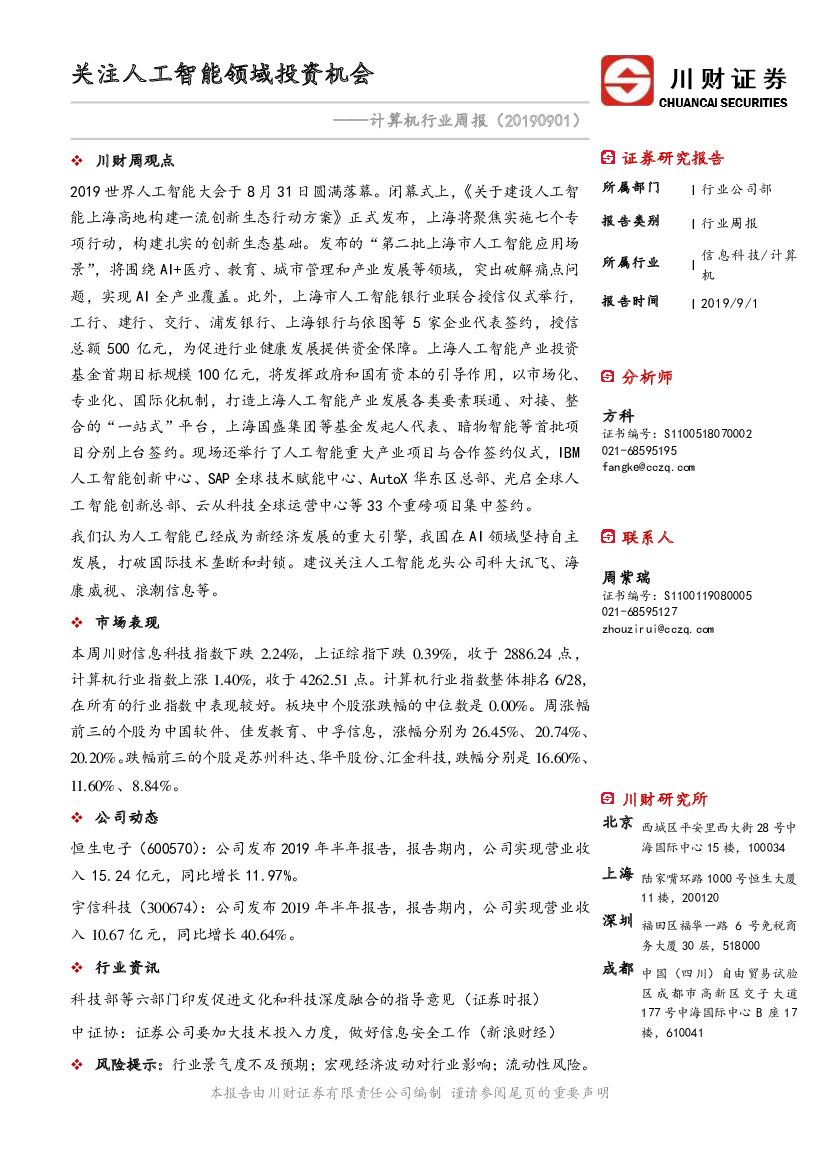 川财证券:计算机行业周报:关注人工智能领域投资机会.pdf