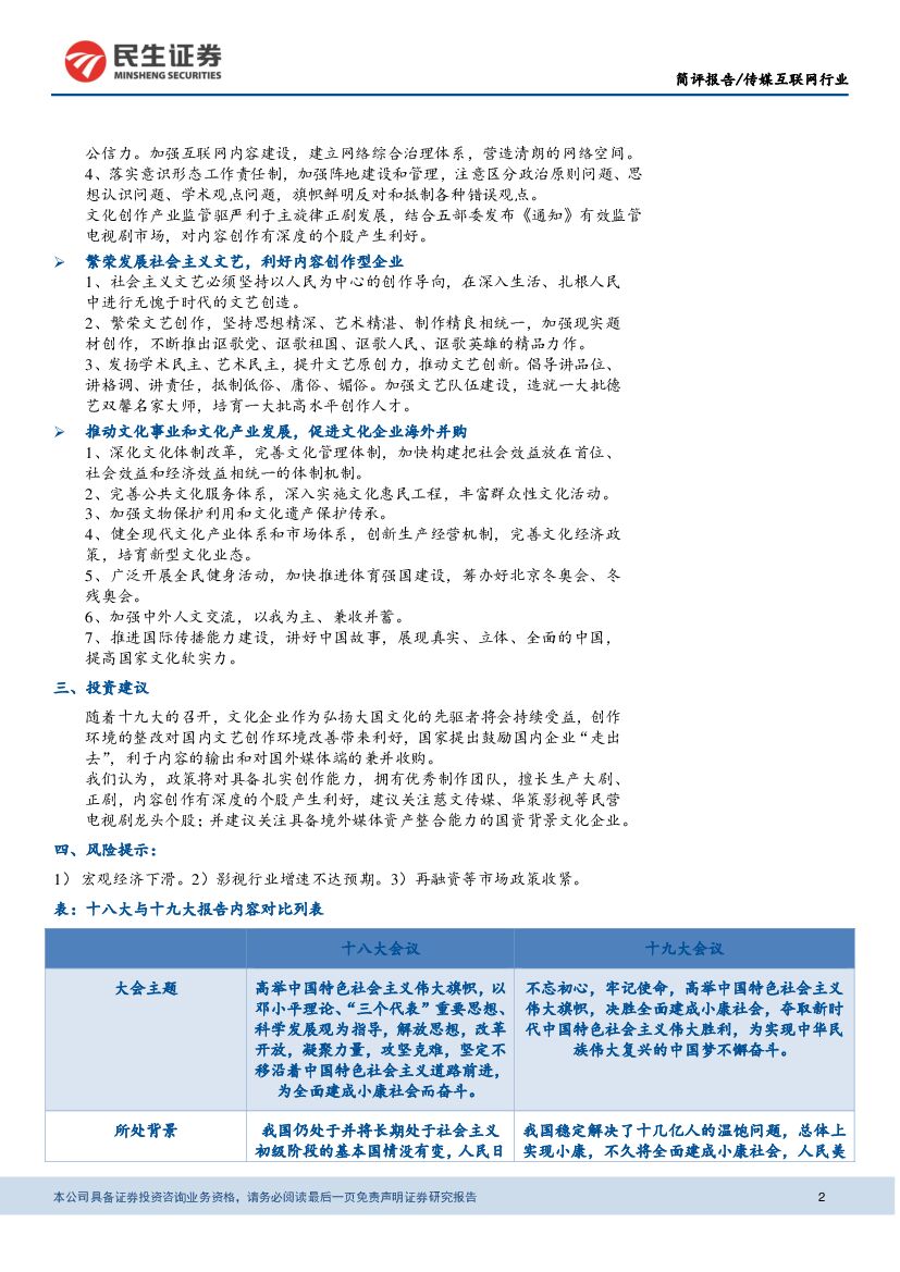 民生证券:传媒互联网行业:“十九大报告”事件点评-坚定文化自信,推动社会主义文化繁荣.pdf