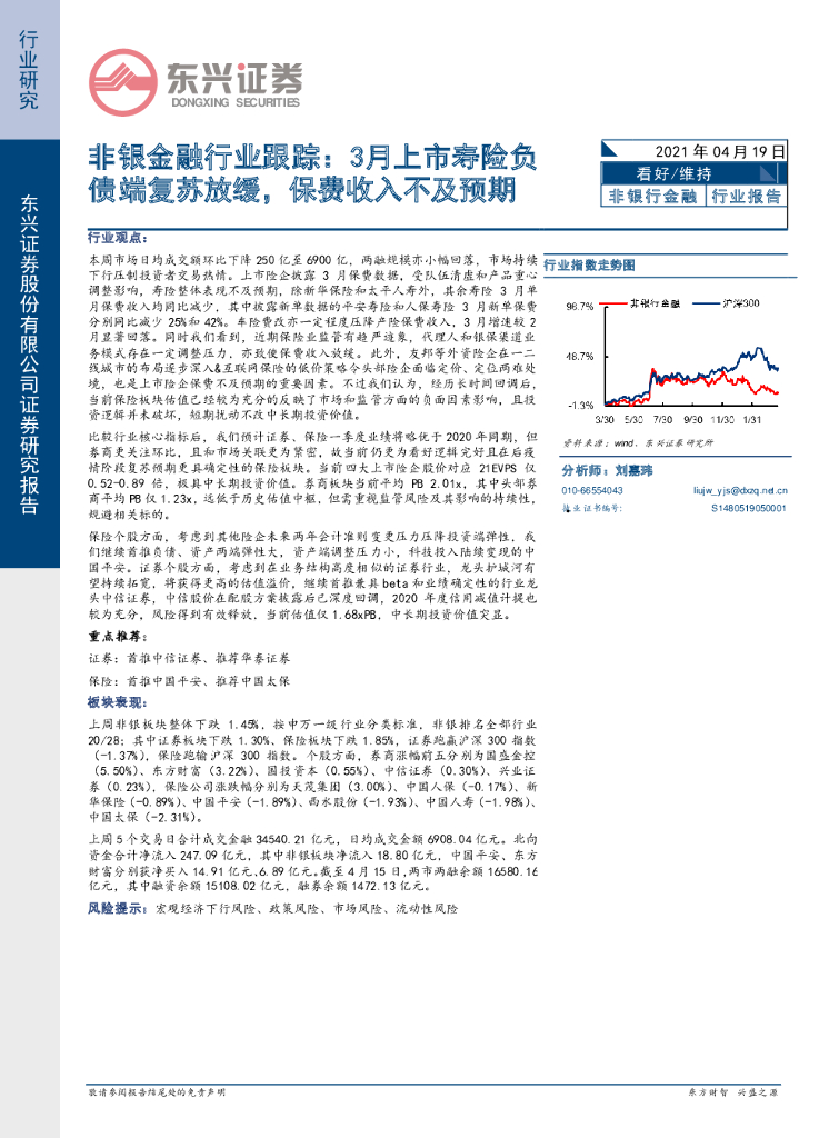 东兴证券:非银金融行业跟踪:3月上市寿险负债端复苏放缓,保费收入不及预期.pdf