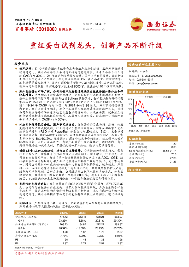 西南证券:百普赛斯(301080)-重组蛋白试剂龙头,创新产品不断升级.pdf