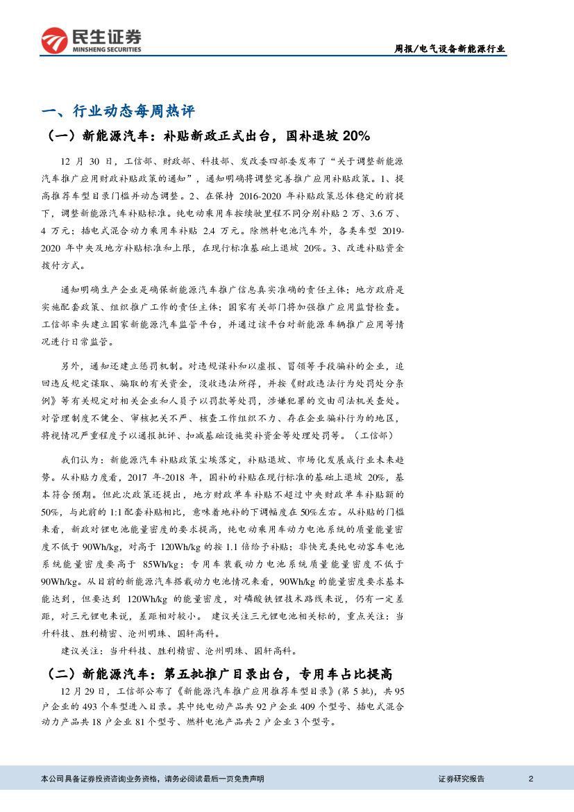 民生证券:电气设备与新能源行业行业周报:补贴新政+第五批目录出台,新能源汽车政策尘埃落地.pdf