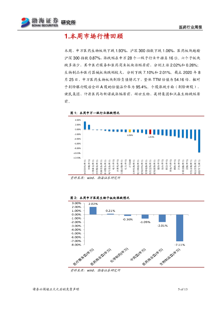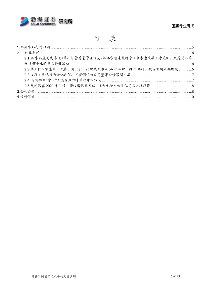 渤海证券:医药行业周报:第三批带量采购正式开标,创新仍是主旋律.pdf