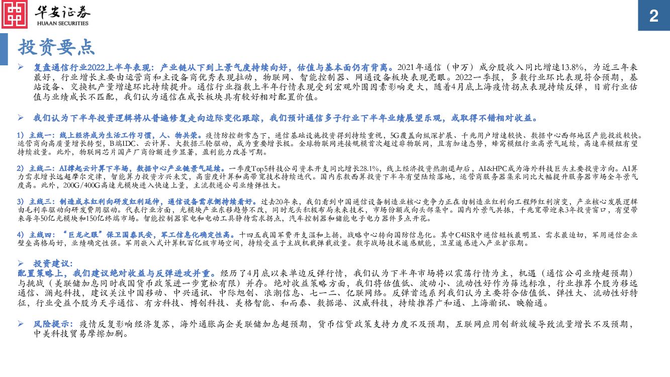 华安证券:通信行业2022下半年投资策略:后疫情时代新常态,通信持续为数字经济赋能.pdf