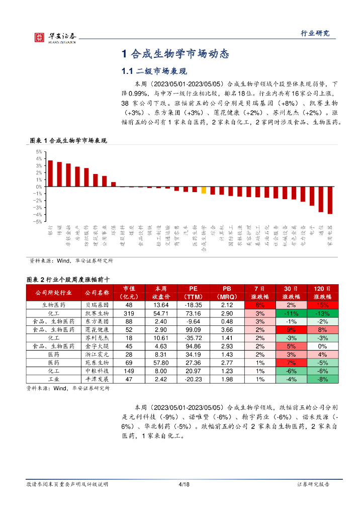 华安证券:合成生物学周报:合成生物学企业一季度业绩分化,几丁质生物合成过程已被破译.pdf
