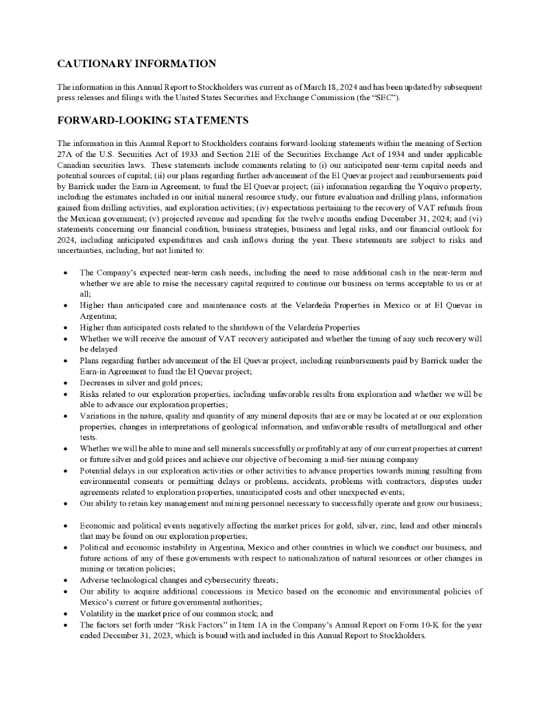 Golden Minerals Company(AUMN)2023财年年度报告(英文版).pdf