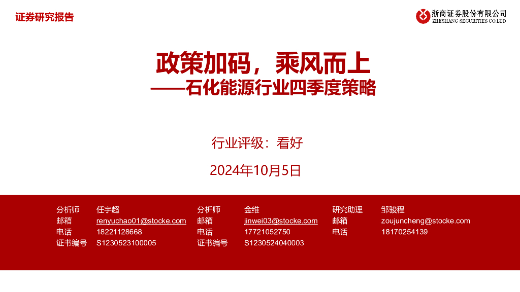 浙商证券-:石化能源行业四季度策略:政策加码,乘风而上.pdf