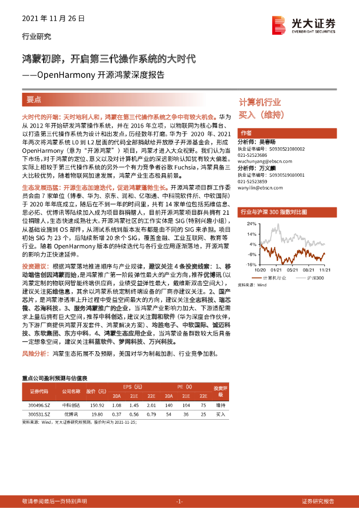 光大证券:计算机:OpenHarmony开源鸿蒙深度报告-鸿蒙初辟,开启第三代操作系统的大时代.pdf