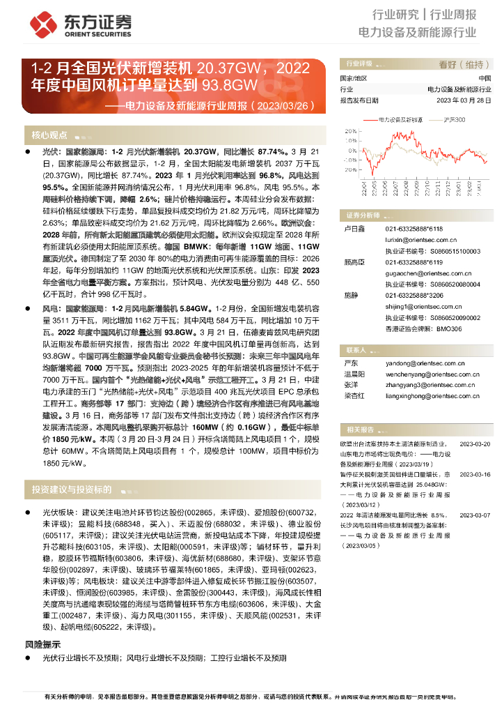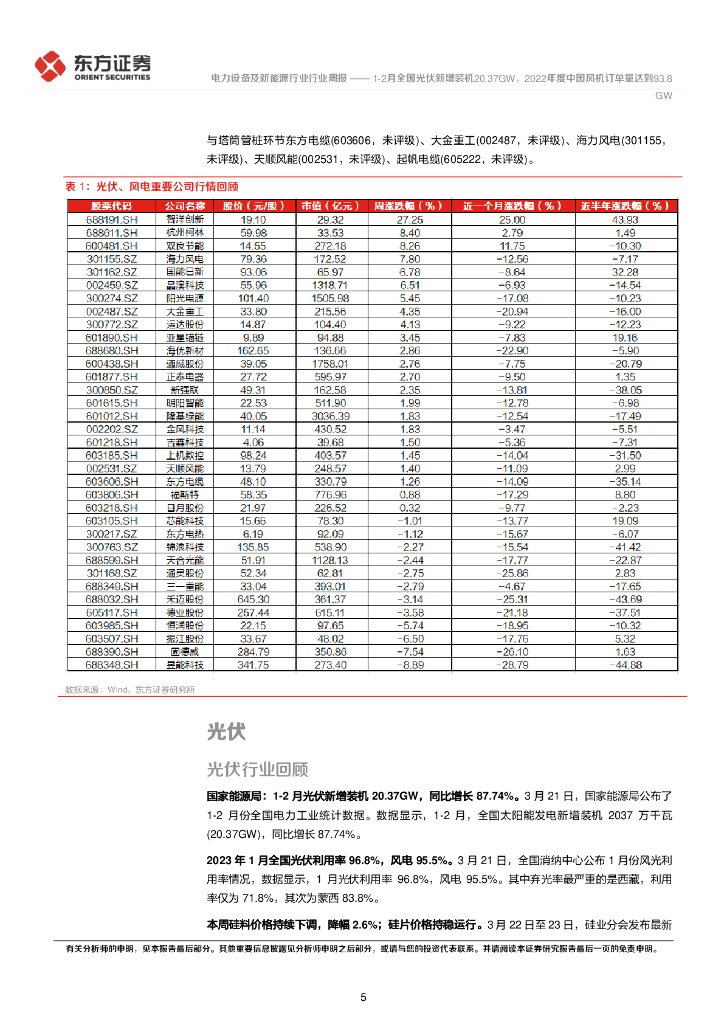 东方证券:电力设备及新能源行业周报:1-2月全国光伏新增装机20.37GW,2022年度中国风机订单量达到93.8GW.pdf
