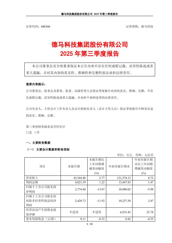 688360-德马科技:德马科技2025年第三季度报告.pdf