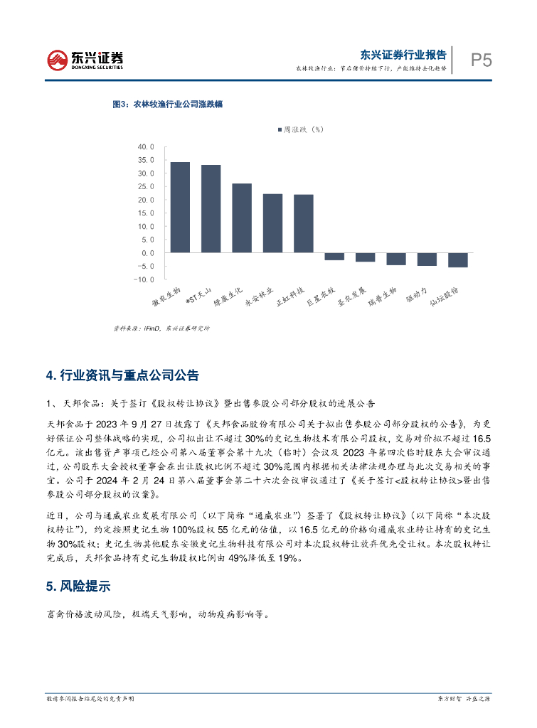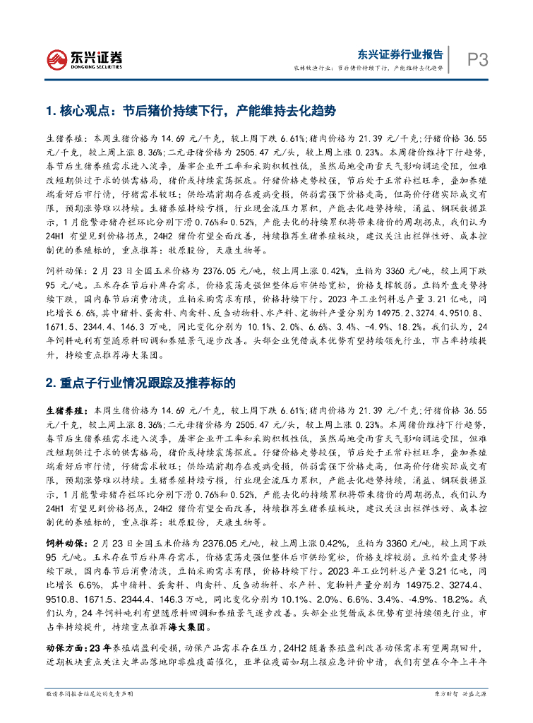 东兴证券:农林牧渔行业周观点(2024年第8周):节后猪价持续下行,产能维持去化趋势.pdf