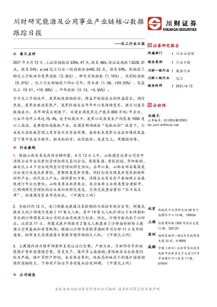 川财证券:化工行业日报:川财研究能源及公用事业产业链核心数据跟踪日报.pdf