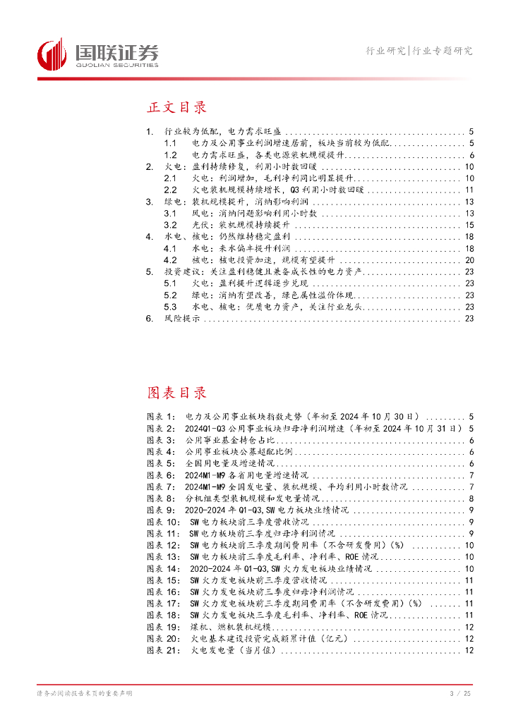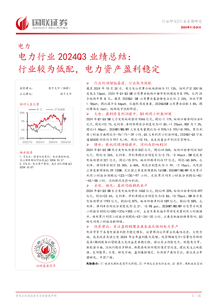 国联证券:电力行业2024Q3业绩总结:行业较为低配,电力资产盈利稳定.pdf