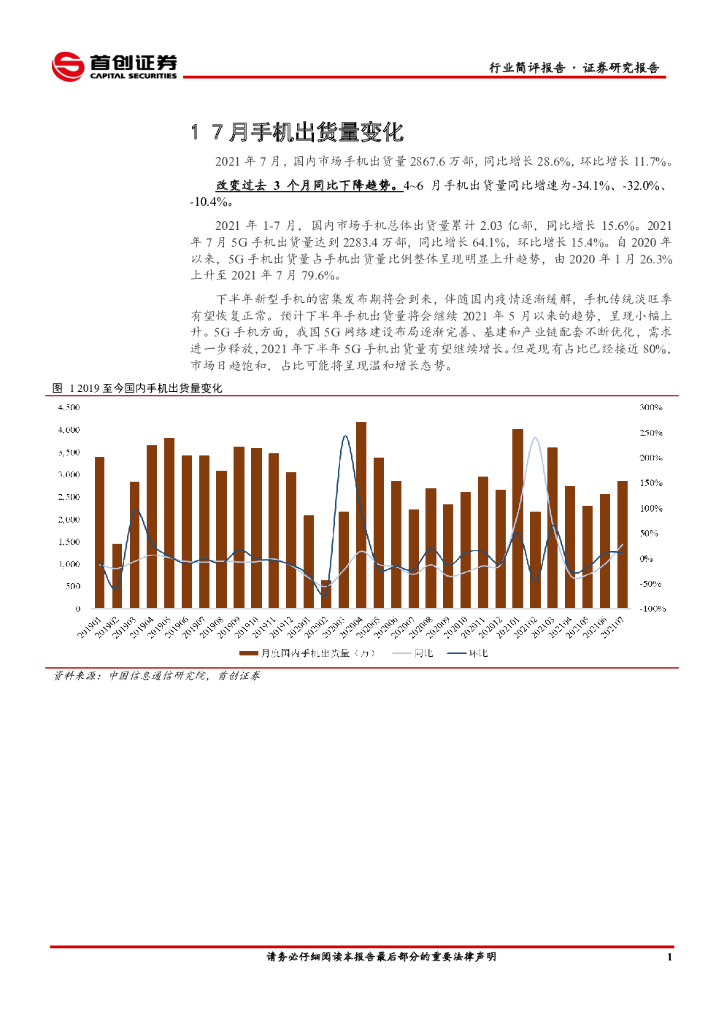 首创证券:电子行业简评报告:7月手机出货量触底反弹,回暖行情有望持续.pdf