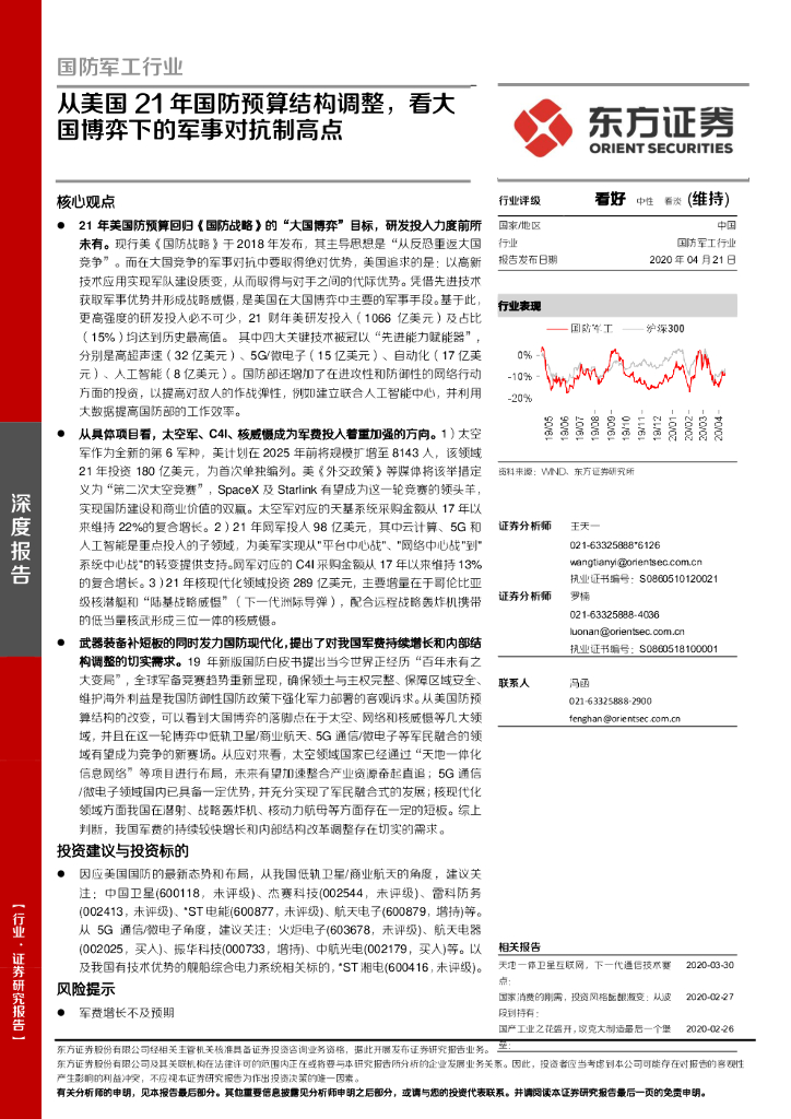 东方证券:国防军工行业:从美国21年国防预算结构调整,看大国博弈下的军事对抗制高点.pdf